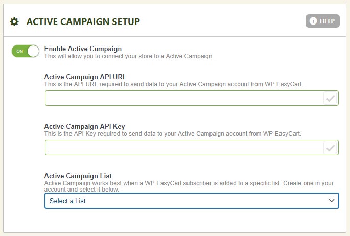 ActiveCampaign is an online email and newsletter sending and automation system designed to give you great looking email and sending control. EasyCart gives you an integration that sends email subscribers directly into an ActiveCampaign list. The programming is all done, just setup your API keys and start collecting subscribers.