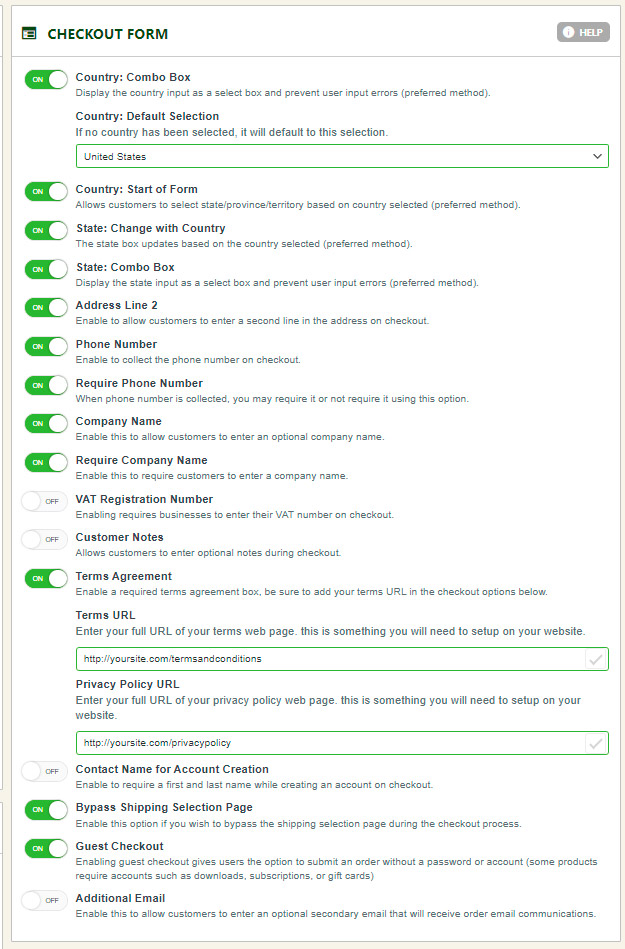 These options allow you to define further how the checkout process will work in your ecommerce store.