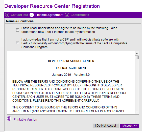 Visit the web services developer portal on FedEx’s website and make sure you have an account. https://www.fedex.com/en-us/developer/web-services/process.htmlStep 2