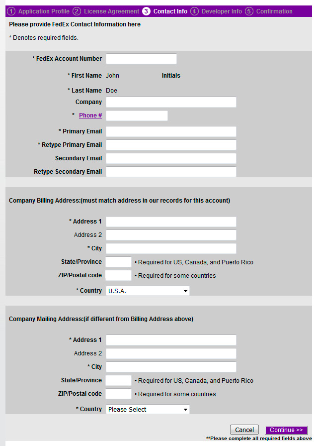 Enter your contact information including the correct 9 digit account number for your FedEx account. You may find that account number back in your account or profile.