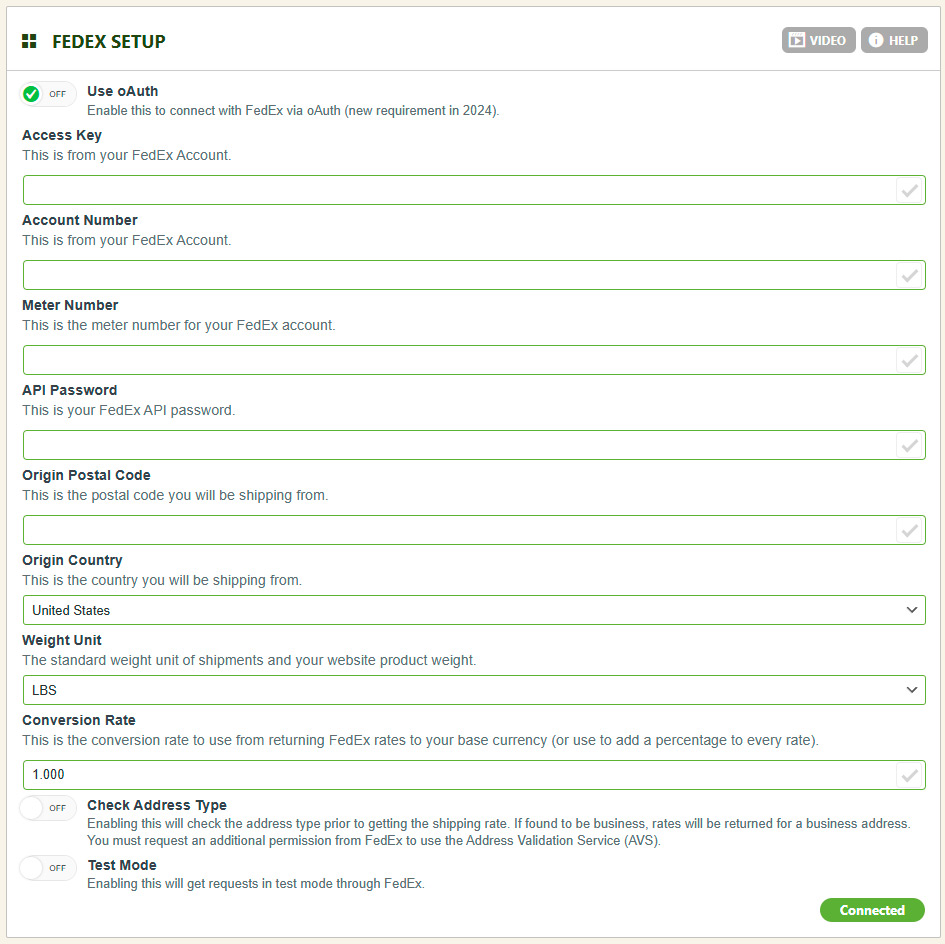 FedEx web services is an older configuration which will be ending in August, 2024 in favor of their newer oAuth connection mentioned above. If you are looking to connect, we highly recommend you use the above instructions, but the below are provided for any not using oAuth and using older Web Services connection.Step 1