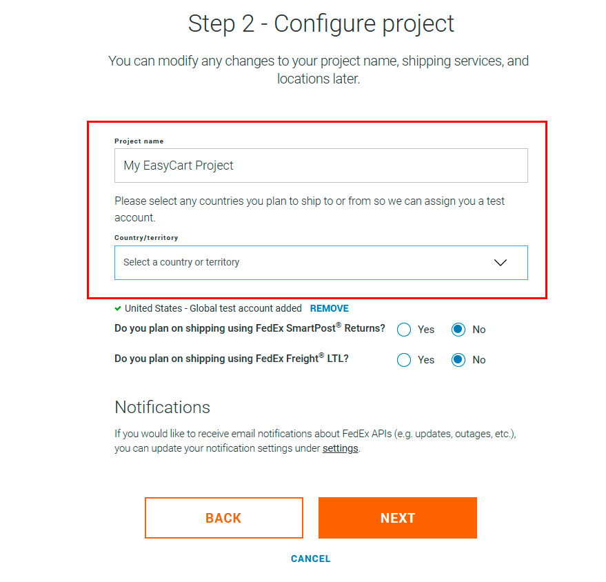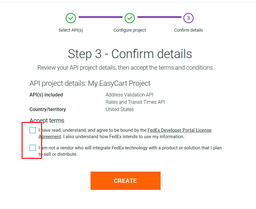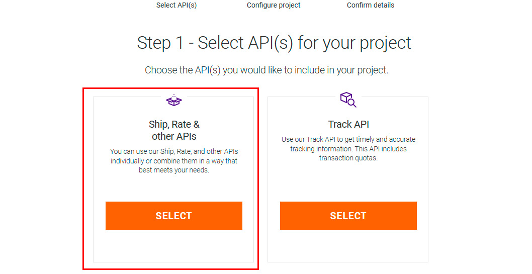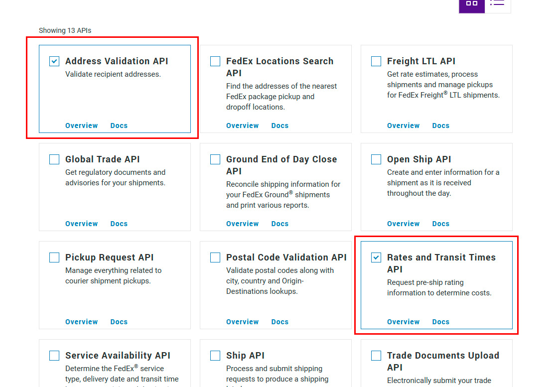 Choose Address Validation API & Rates and Transit Times API as the services you will be using.