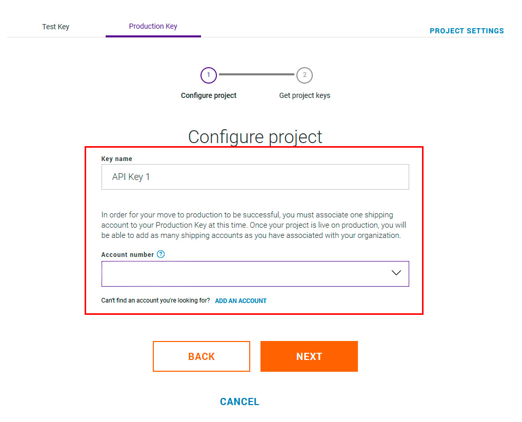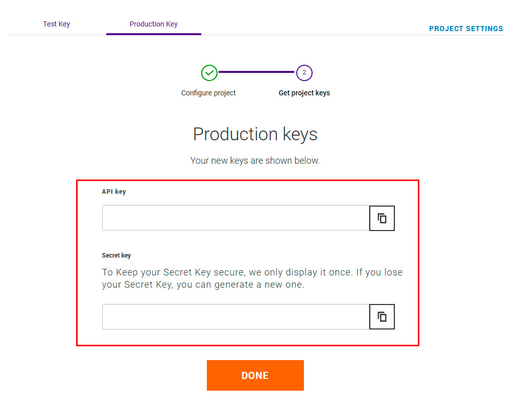 You will create a project using My Projectt on the side menu and then Create a new Project. Select a third party software solution requesting API keys.