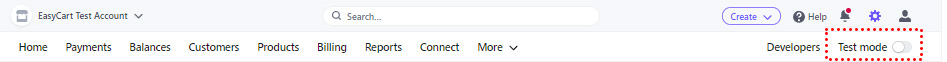 Stripe makes it easy to switch between testing mode and live mode, but there are important things to keep in mind. If you build customers, products, subscriptions, and other data in test mode, you may need to also make sure to build them in live mode. For the most part, testing is fairly seamless, switch EasyCart to Sandbox mode and use Stripe test cards to see it in action. Switch it back to live mode and it will all go live. Stripe also provides an easy switch on their interface to see live and test mode data and transactions.