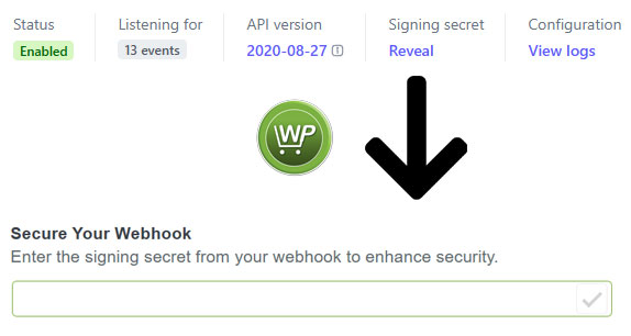 Enhance Stripe Webhook Security: It is highly recommended that you use the “Webhook Signing Secret” to prevent unauthorized access of your webhook endpoint. You will find this value in your Stripe account, while editing the webhook endpoint (after it is created). This value is near the top of the screen and labeled “Signing Secret” and “Reveal” can be clicked to show the value. Copy and paste that into your Stripe settings in WP EasyCart. Screenshots below: