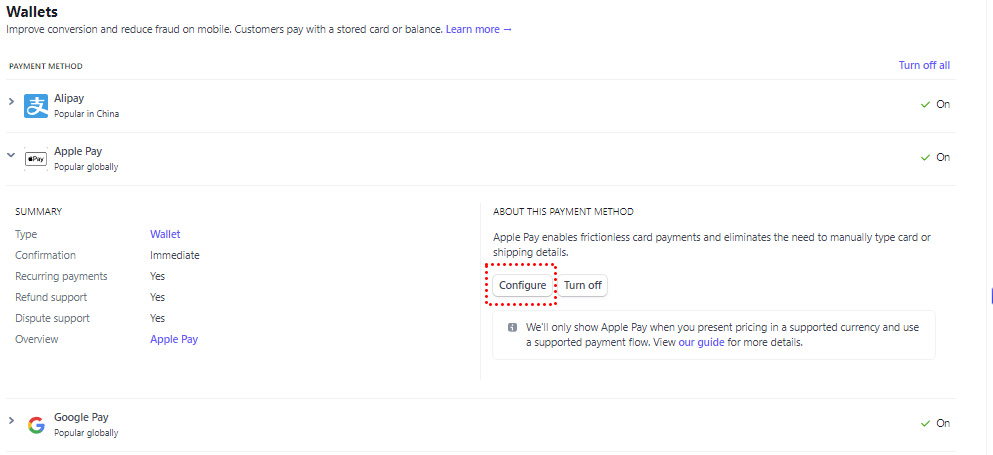 Enabling Apple Pay/Google Pay/Microsoft Pay