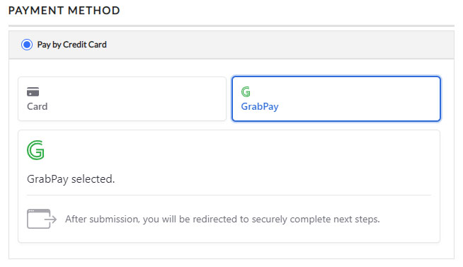 At checkout you will then have access to pay with GrabPay along with regular credit card processing.