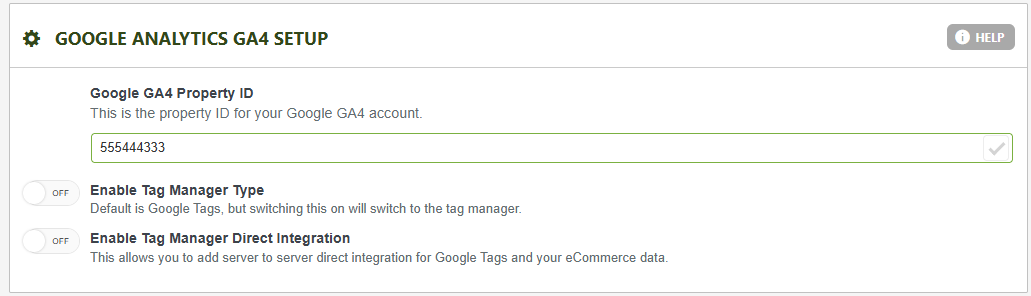Enter your Analytics ID in this location will enable eCommerce transactions to be sent to google analytics for analysis. Please note that this does not enable google analytics page statistics on every page in your website.