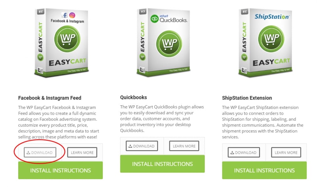All WP EasyCart extensions are new plugins that you install, just as any plugin from WordPress.org or other external site. As a Premium member, you can access and download all extensions and apps via your Premium Content area. Just look for the menu at the top of www.wpeasycart.com. Professional license holders must upgrade in order to access the extensions.