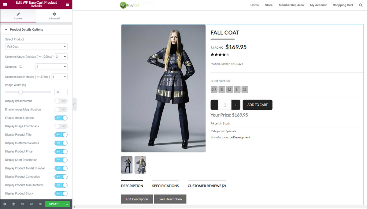 - Drag and Drop EasyCart product onto a page with Elementor component.