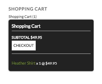 The mini cart widget is great for sidebars or top menus where you want the customer to open and see quickly what they have in the shopping cart. It works in most themes and gives quick access to all the items in the cart, as well as a link to go checkout quickly. The mini-cart widget will open when rolled over.