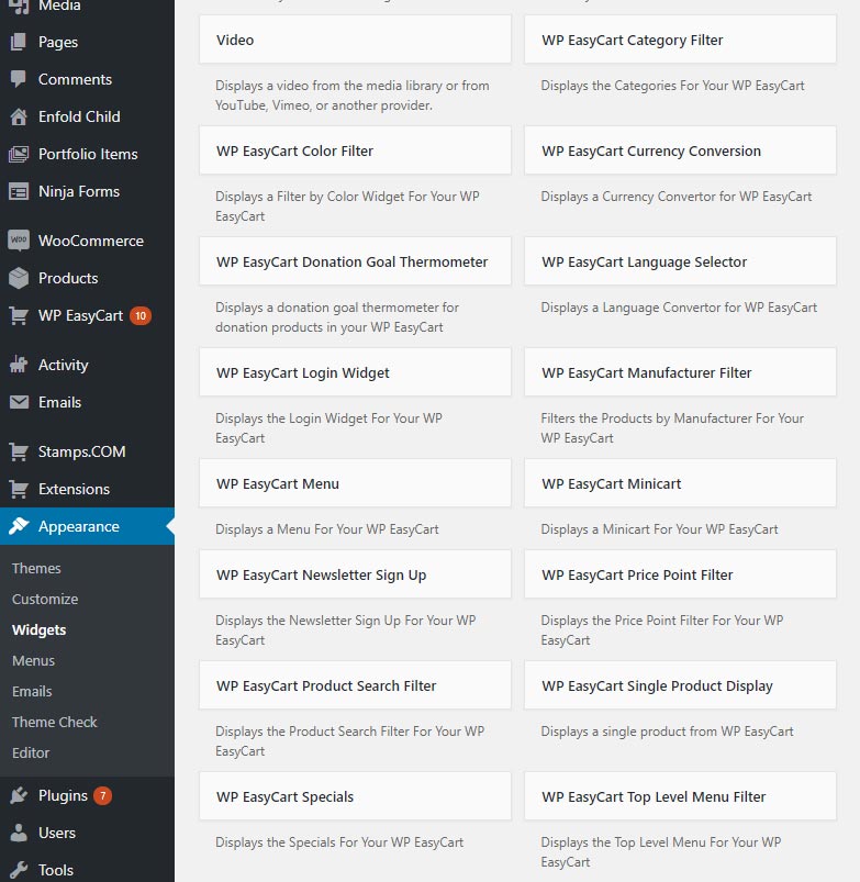 WP EasyCart provides a lot of widgets to help integrate the shopping system into your website. Search widgets, Newsletter sign-up widgets, product filtering widgets, and more allow you to customize what you want to have running on your website.