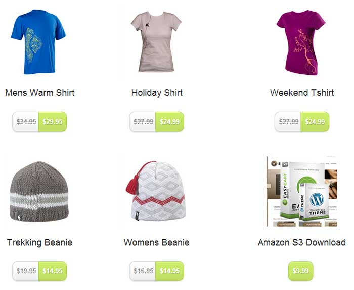 Easily create a product display list using a the display type “custom display type 1”. Order the items by rearranging the product ids in the shortcode once added to the text editor. Notice, you should match the columns to the relative width of the page for best visual results! This shortcode results in the display below.