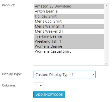This shortcode allows you to insert a multiple products in any order you want and with a custom display type. This allows you to have more control over the diplay order of the products and minimize the information that is shown to the customer. This tool is useful for building a custom layout of products specific to your needs. Learn how to build a product here.